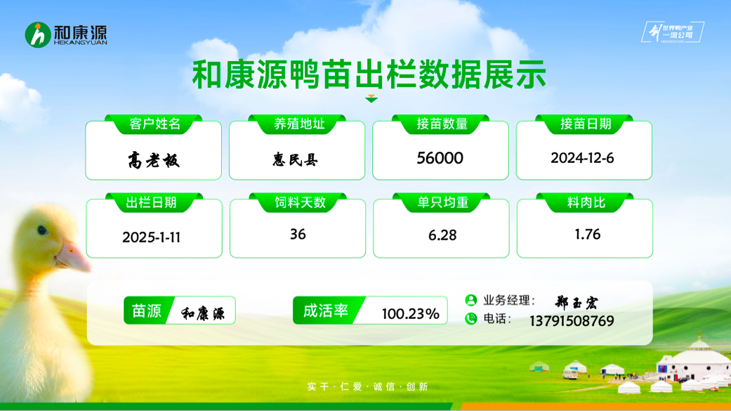 【好品】数据就是口碑,和康源鸭苗近期出栏数据亮眼