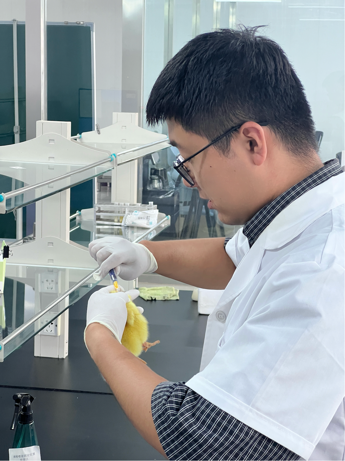 刚来到工作岗位像是有一种回家的亲切感,同事们都很热情,工作氛围也很好,他们总是毫无保留地教给我他们所会的一切。这段时间里,我学到了很多学校与书本未曾触及的知识,像是种鸭、雏鸭的采血,种鸭、雏鸭的解剖,采集病料,细菌的分离鉴定,环境采样,鸭苗的质量检测等等,看似每日重复的工作,实则每天都有新的收获,正如那句“简单的事情重复做,重复的事情用心做”,每一次操作都能发现新的细节,每一次复盘都能沉淀新的感悟。