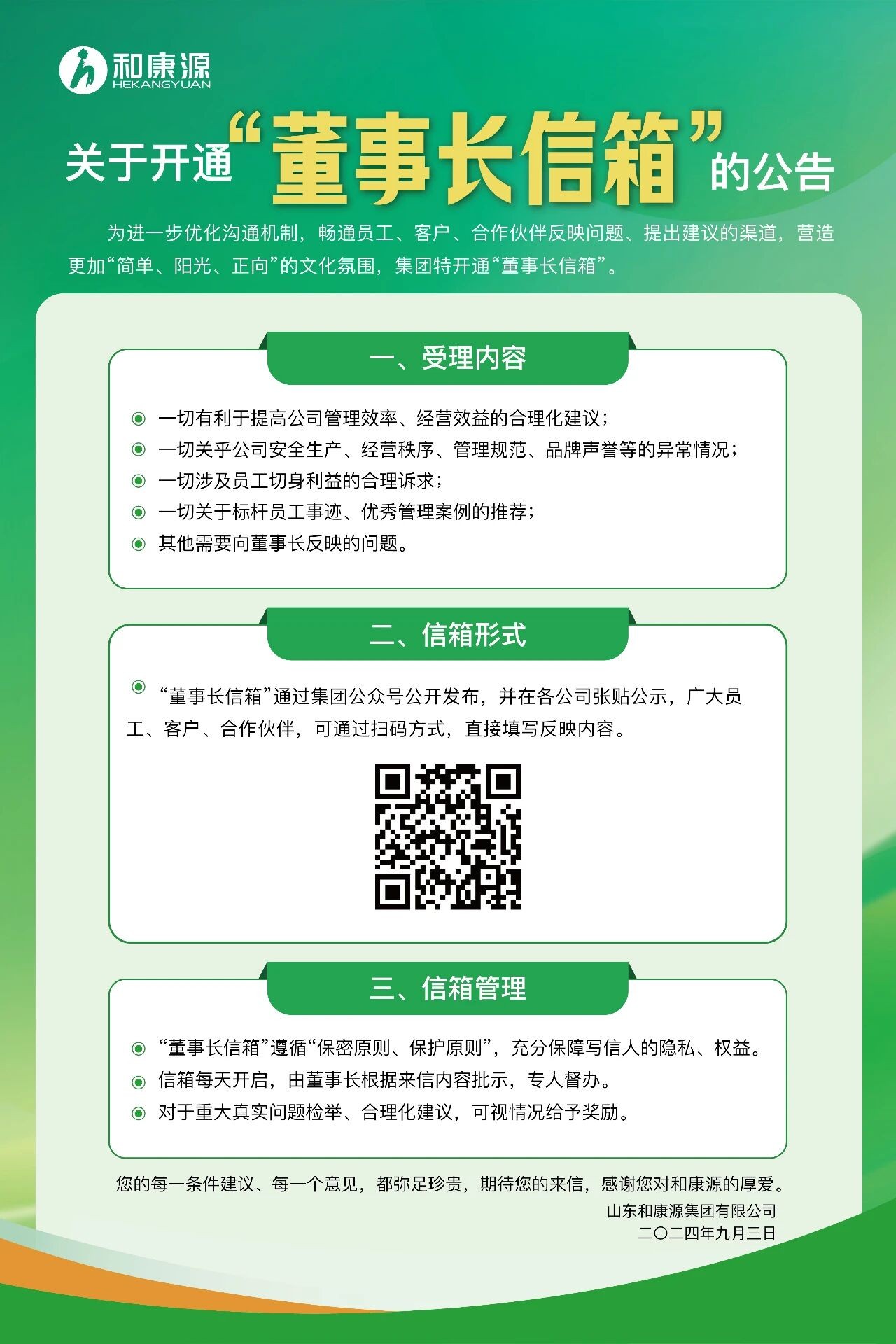 目前,和康源“董事长信箱”已经正式开通!你可以通过这个信箱,把意见及建议传递给董事长,好建议不嫌多,好声音不嫌少,只要你想,都可以来这里~