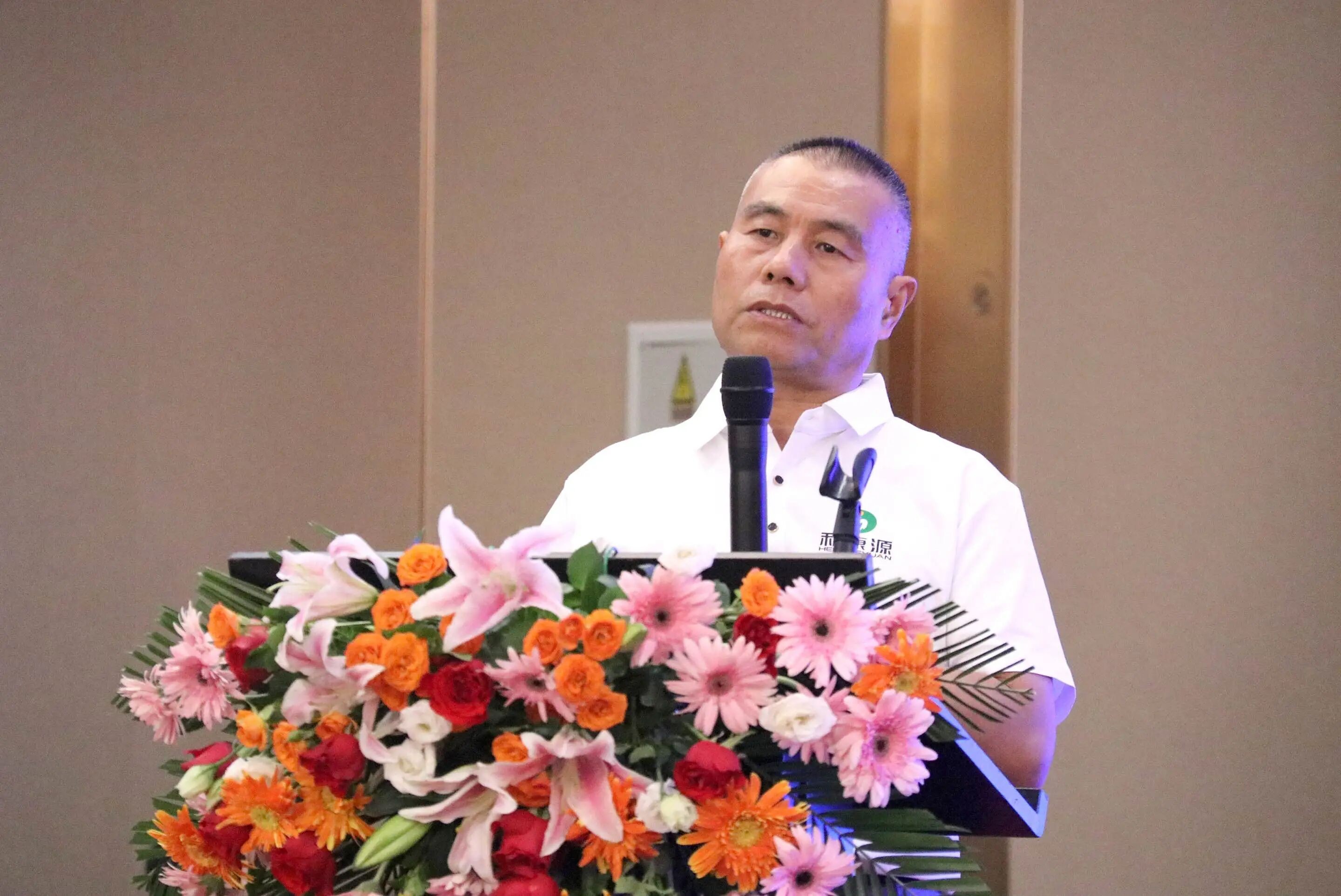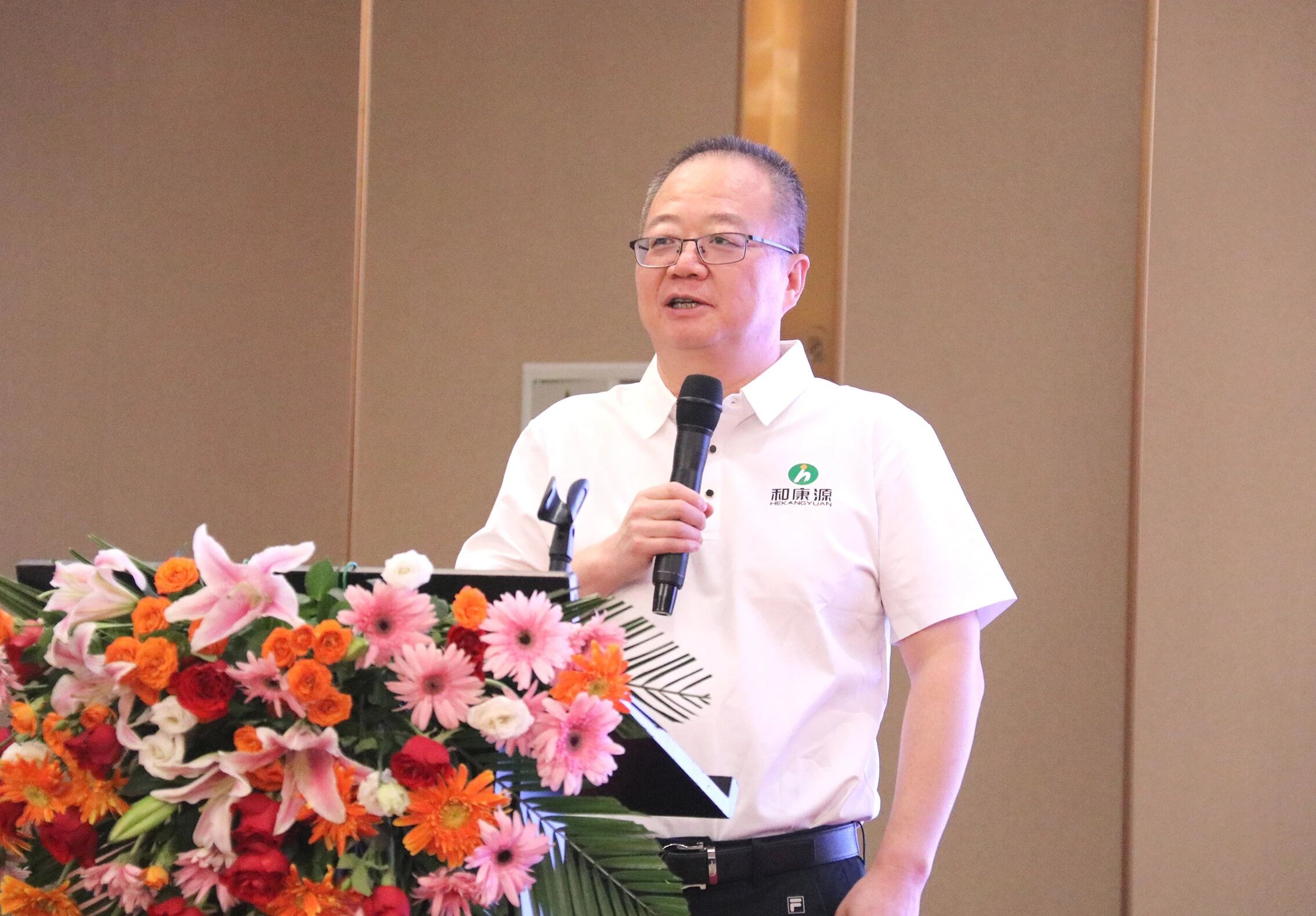 随后,和康源集团董事长孟庆利现场致辞。他详细讲解了和康源的发展历程,强调了企业一直秉持的“依道而行、顺势发展”的理念。在谈到惠生食品时,董事长表示,惠生食品要始终坚持高质量生产,致力于做安全、健康、可追溯的优质蛋白产品。同时,要建立良好的文化氛围,坚持爱心、善良文化,不能有伤害客户利益的产品与行为,为客户持续创造价值,并坚持长期主义。他的话语掷地有声,让在场的客户们感受到了惠生食品的责任感和使命感。