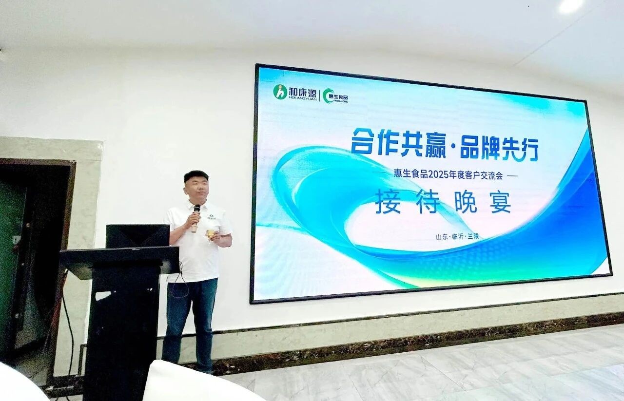下午的交流会环节,气氛热烈而融洽。和康源集团食品板块营销线路总经理宋友首先上台,对各位客户的到来表示了热烈的欢迎。他表示,惠生食品一直非常重视与客户之间的合作,希望通过这次活动,能够进一步加强与客户的沟通和交流,共同探讨未来的发展方向。