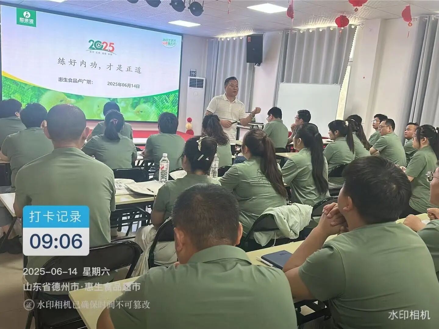 6月 14 日,惠生食品生产管理团队与原料精英齐聚一堂,共同学习“练好内功才是正道” 为主题的企业文化专题培训。本次培训,结合行业洞察、团队建设与精细化管理等核心议题,为全体成员指明行动方向,为惠生食品在行业洗牌期实现逆势突破注入强劲动力。