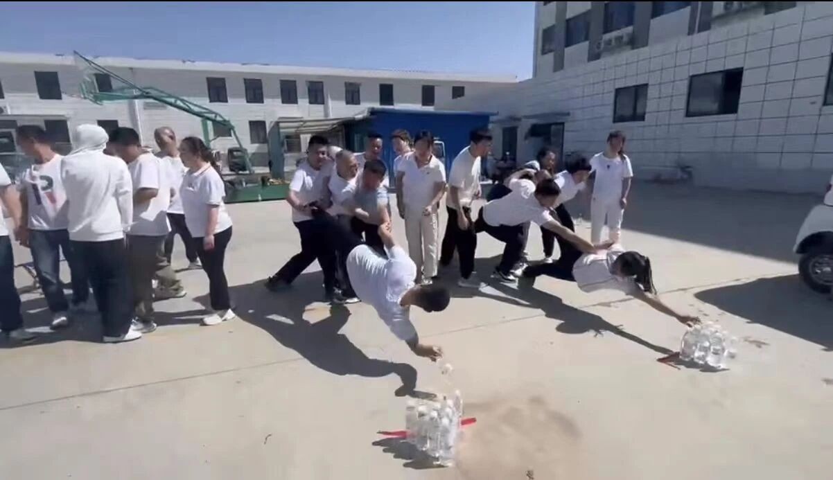 “群龙取水”项目惊险刺激,要在不触碰地面的情况下伸手够到1.8米外的水瓶,堪称“极限挑战”。身材高挑的队友化身取水先锋,其他人则组成“人肉绳索”牢牢拉住。取水者将安全交给后背的伙伴,后方队员也用尽全力守护信任。这让大家懂得,在工作中,信任是最坚固的铠甲,当团队彼此托底、各展所长,再难的任务也能迎刃而解。