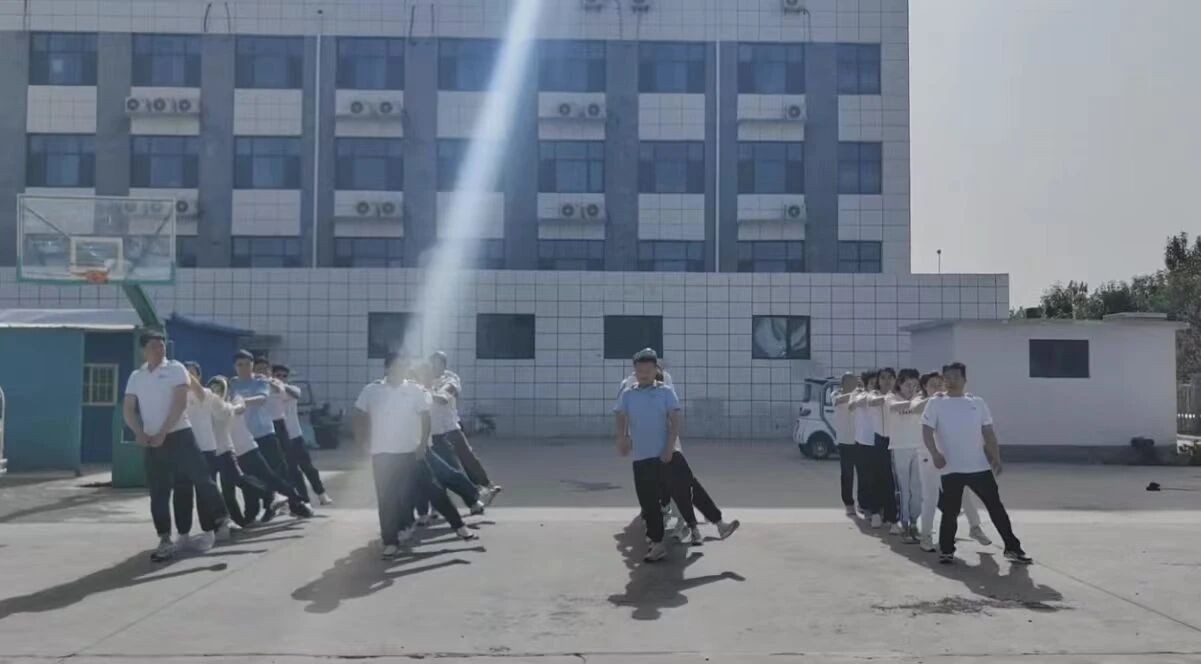 活动伊始,热身环节便点燃了大家的热情。兔子舞的音乐响起,全员瞬间化身“节奏大师”,手搭肩、脚并步,看似简单的舞步,实则需要所有人精准踩点。一旦有人慢半拍,队伍就会“断裂”。这让大家深刻意识到,工作就像集体舞蹈,只有每个人全神贯注、步伐一致,才能跳出高效协作的“优美曲线”,心往一处想、劲往一处使,团队才能跑出加速度。