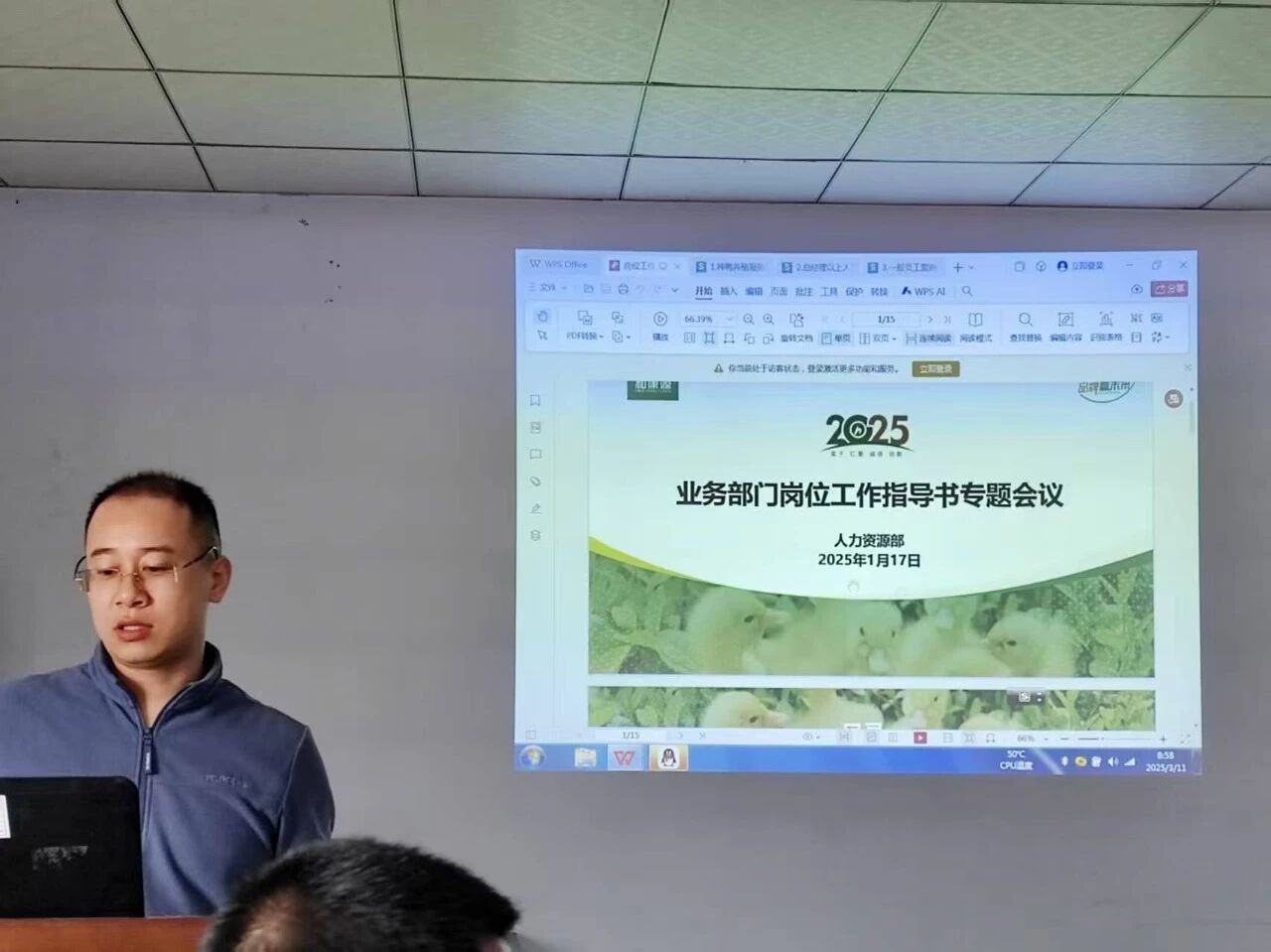 3月,业务部门《岗位工作指导书》以会代训内容宣贯、编制指导等内容率先在种鸡事业部、饲料事业部、种鸭养殖服务中心、种鸭养殖山东片区等地开展,参与本期学习的人员主要为场长、技术员、业务员等。通过本期学习,大家理解了《岗位工作指导书》的用途、编制原因、编制规范。通过训后讨论与追踪,种鸭养殖服务中心、种鸭养殖山东片区率先完成场长以上人员的《岗位工作指导书》梳理。