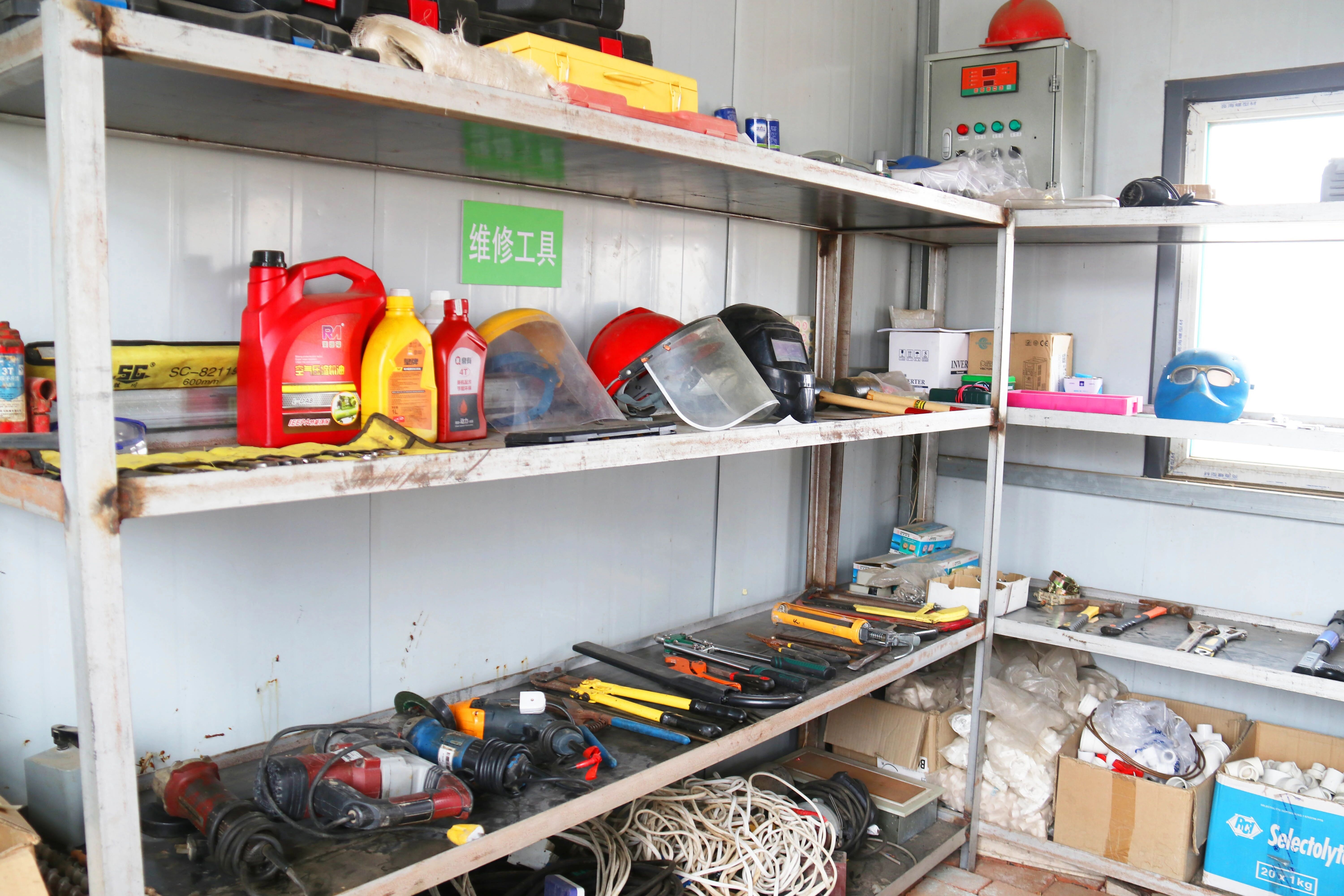 除了日常的维修工作,马师傅还时不时的帮忙场里的其他工作,我们见到马师傅的时候,正巧他帮忙装蛋车回来,马师傅说,哪里需要哪里干,大家一起装蛋车,确保鸭蛋能够及时地运往孵化场。随后,跟随马师傅走进不大的修理间,映入眼帘的是整整齐齐的维修工具,配件分类摆放,标签清晰明了,中间一个自制的工作台,干净整洁,这就是马师傅的工作小天地,整洁的工具间让我们对马师傅的工作颇有敬意。