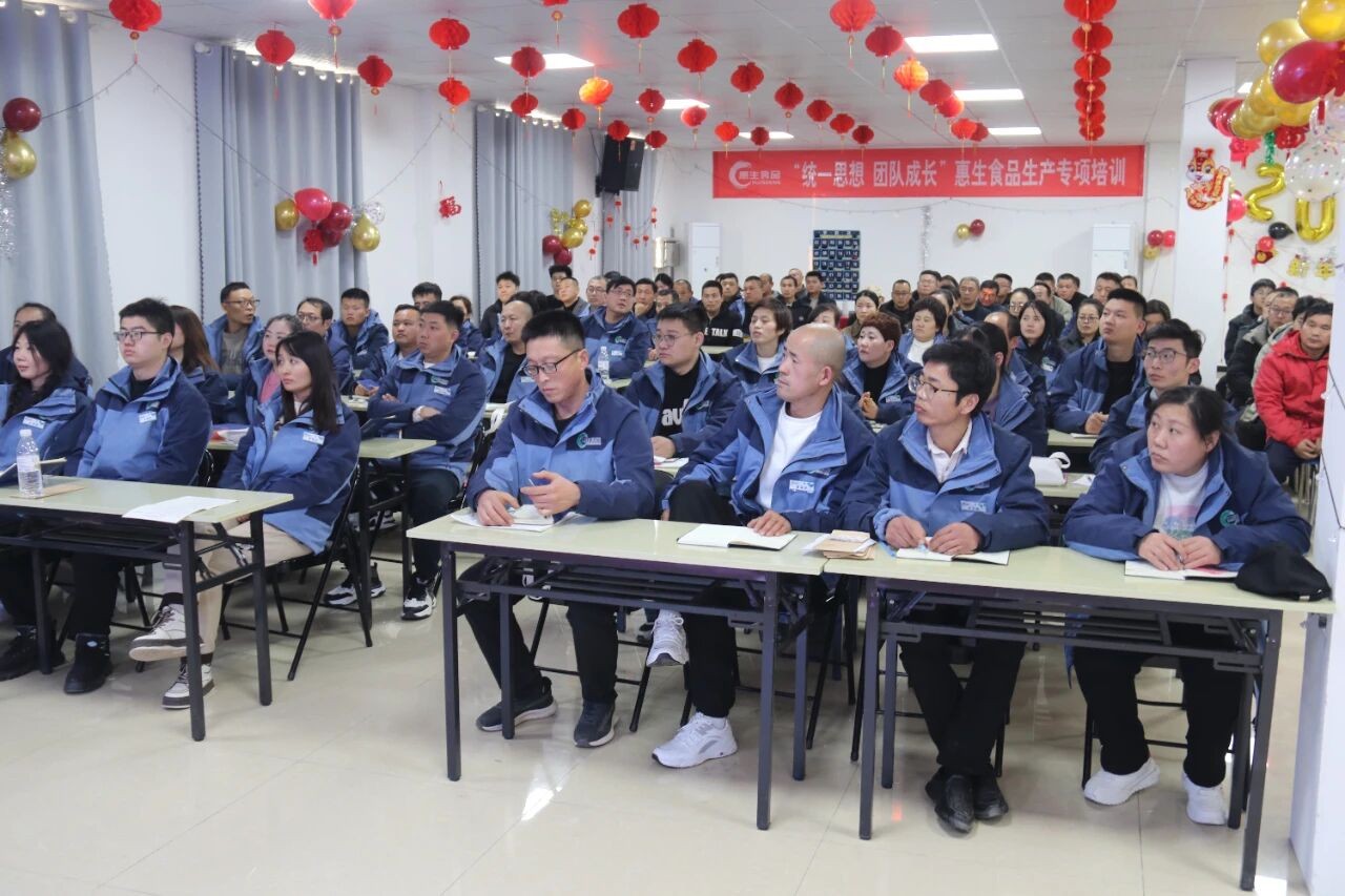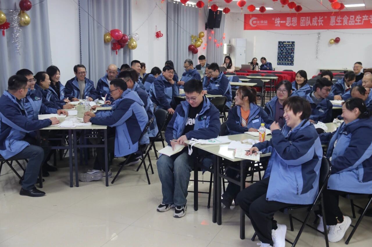 王总在培训过程中,结合惠生食品的整体规划,进一步强调了惠生食品要以客户为中心、爱护员工、做高质量产品的决心,在王总强大的精神鼓励下,员工对公司未来愿景的实现、对高品质产品的追求又有了新认知,并燃起更高的热情!