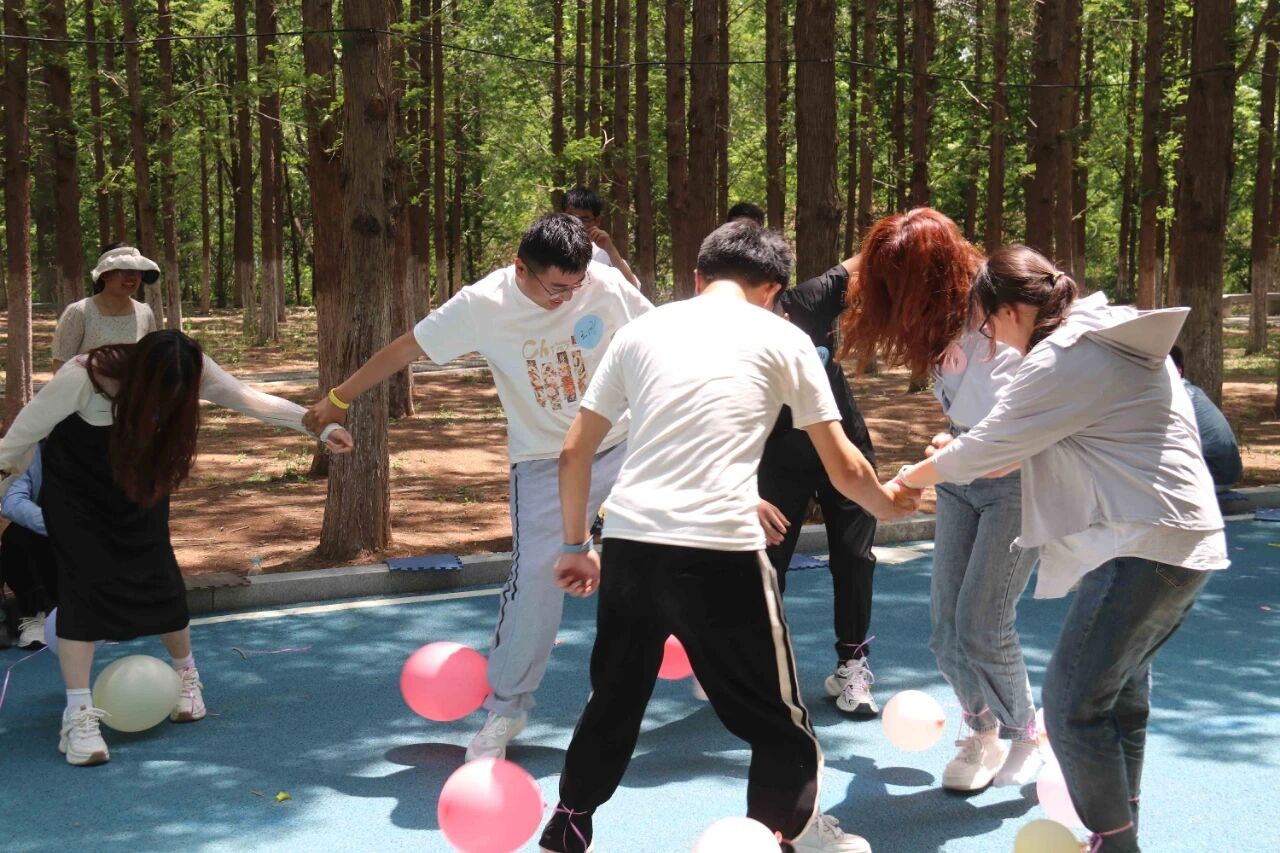 而牵手踩气球游戏则将活动推向了高潮。一男一女通过随机抽红绳组对牵手,共同完成踩爆气球的任务。三对一组展开激烈角逐,现场加油声、欢笑声此起彼伏。最终,六对默契十足的选手脱颖而出,赢得了精美奖品。这个游戏不仅让现场气氛更加活跃,更让参与者在合作中增进了彼此间的默契与情感。