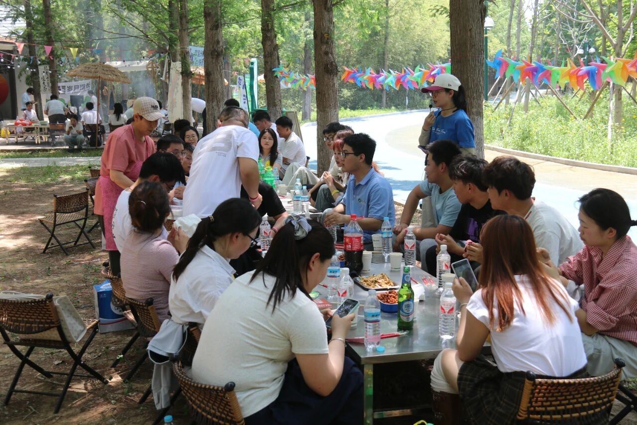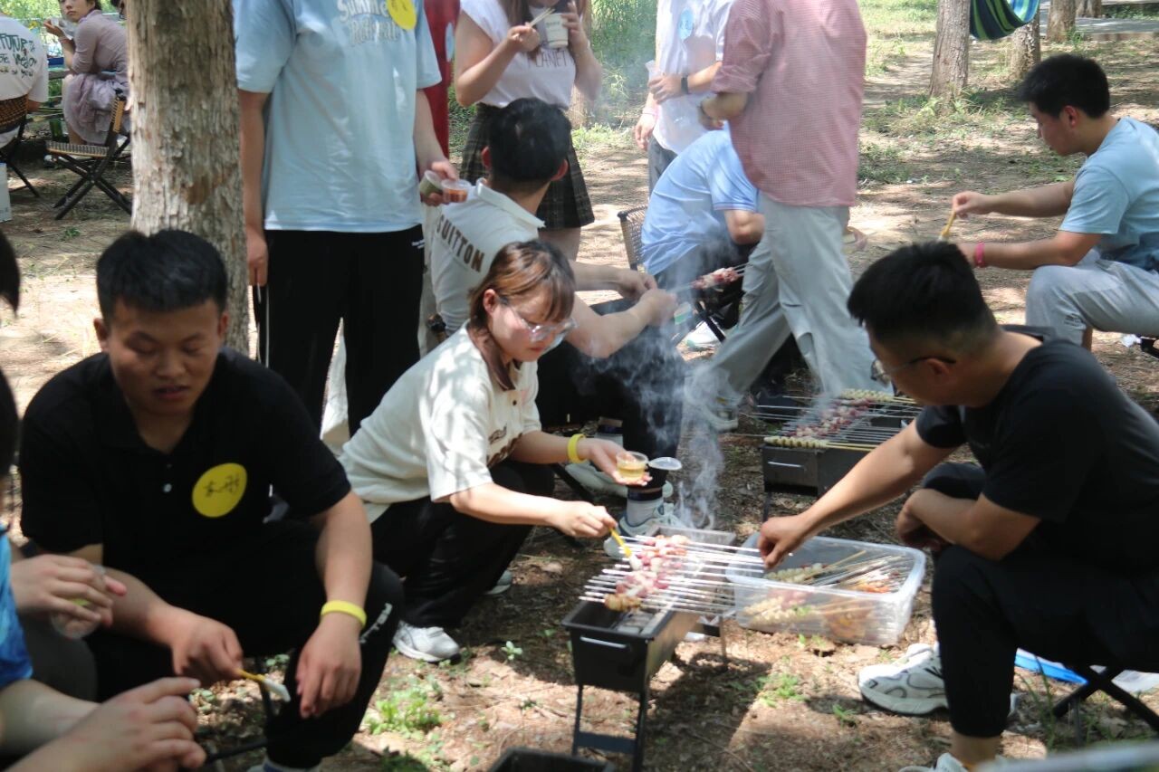 临近中午,大家围坐在树荫下,开启了一场别开生面的室外午餐。男生们自告奋勇坐在烤炉旁,化身“烧烤大师”,为大家烤制美味的食物。炭火熊熊,香气四溢,大家一边品尝着美食,一边畅聊生活趣事,现场氛围浓厚,惬意又自在。