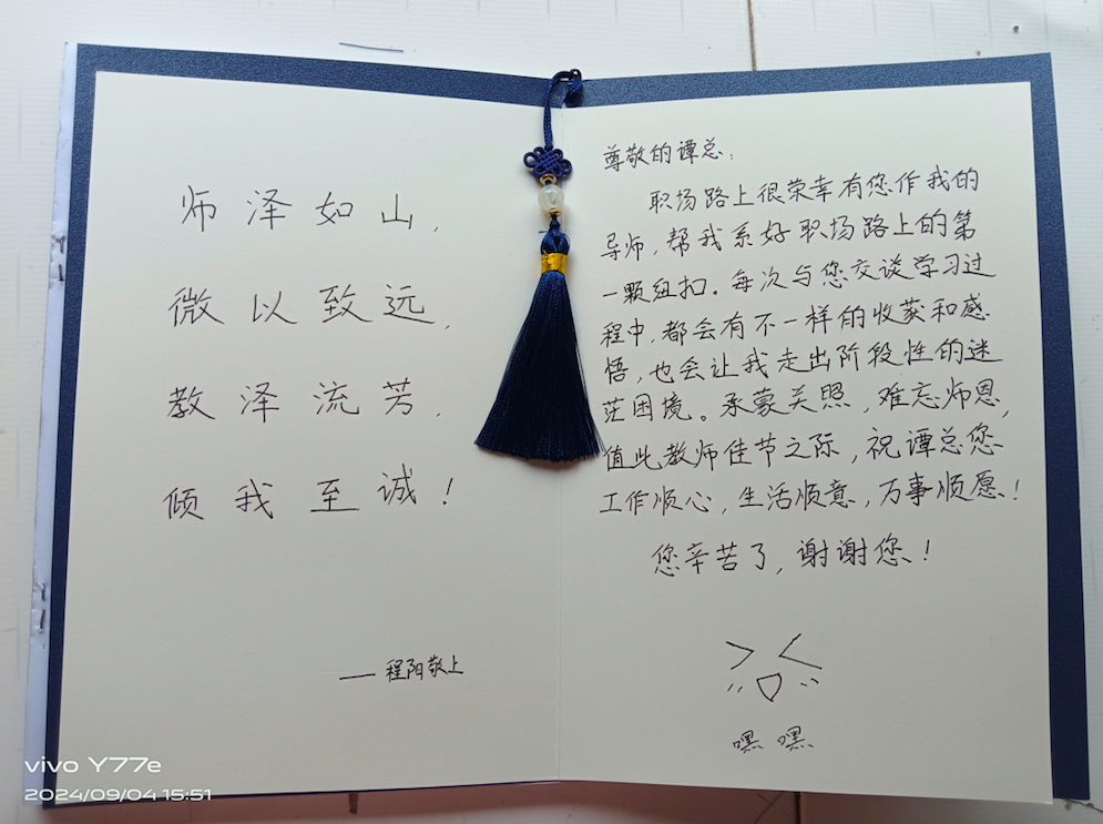 恩师如明月,皎皎伴我行。方遒学员们把对导师浓浓的爱用一张张独一无二的贺卡表现得淋漓尽致,把对导师真诚的祝福变成贺卡上一句句最温暖的话语。