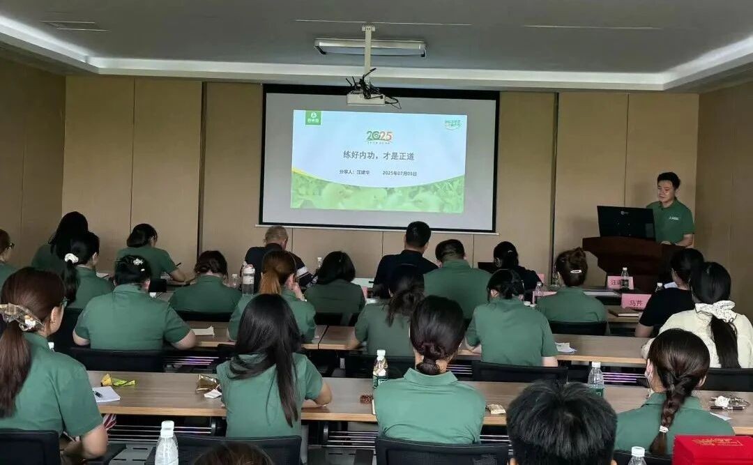 同样在7月5日下午,动保研发中心总经理汪建华开展企业文化培训。他强调,在行业“寒冬”背景下,唯有练好内功、坚守长期主义,才能走好正道。汪总将“成为水禽行业最好、畜牧行业一流的动保中心”作为未来三年战略规划,提出扎根主业、细节制胜、长期主义赢未来的理念,为动保中心发展明确了方向。