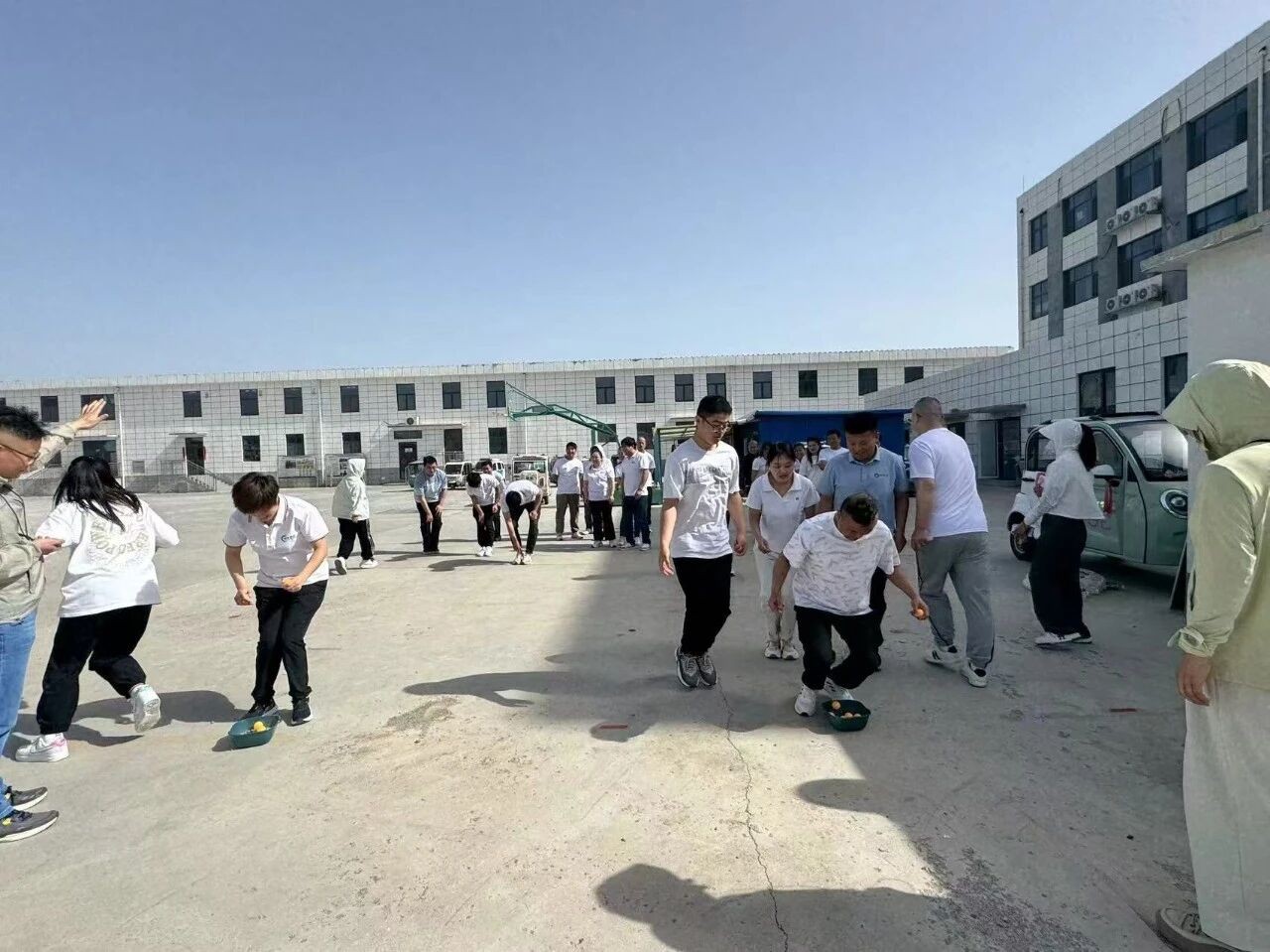活动伊始,热身环节便点燃了大家的热情。兔子舞的音乐响起,全员瞬间化身“节奏大师”,手搭肩、脚并步,看似简单的舞步,实则需要所有人精准踩点。一旦有人慢半拍,队伍就会“断裂”。这让大家深刻意识到,工作就像集体舞蹈,只有每个人全神贯注、步伐一致,才能跳出高效协作的“优美曲线”,心往一处想、劲往一处使,团队才能跑出加速度。