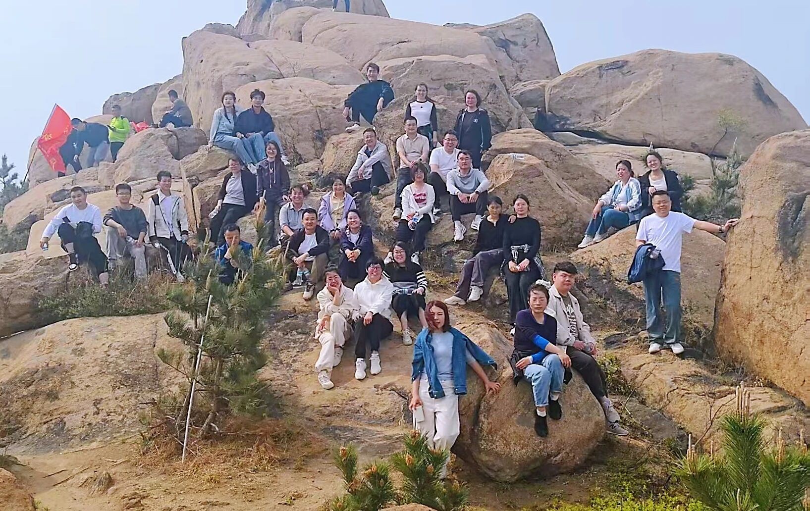 18日晨光中,财务线路向宁阳凤仙山进发。崎岖山路上,大家相互鼓励,彼此扶持,在蜿蜒的山路上留下了一串串坚实的脚印,经验丰富的队员为大家指引方向,最后大家一起登顶合影留念,这次登山,就像日常的工作,需要一步一个脚印,更需要团队的通力合作。