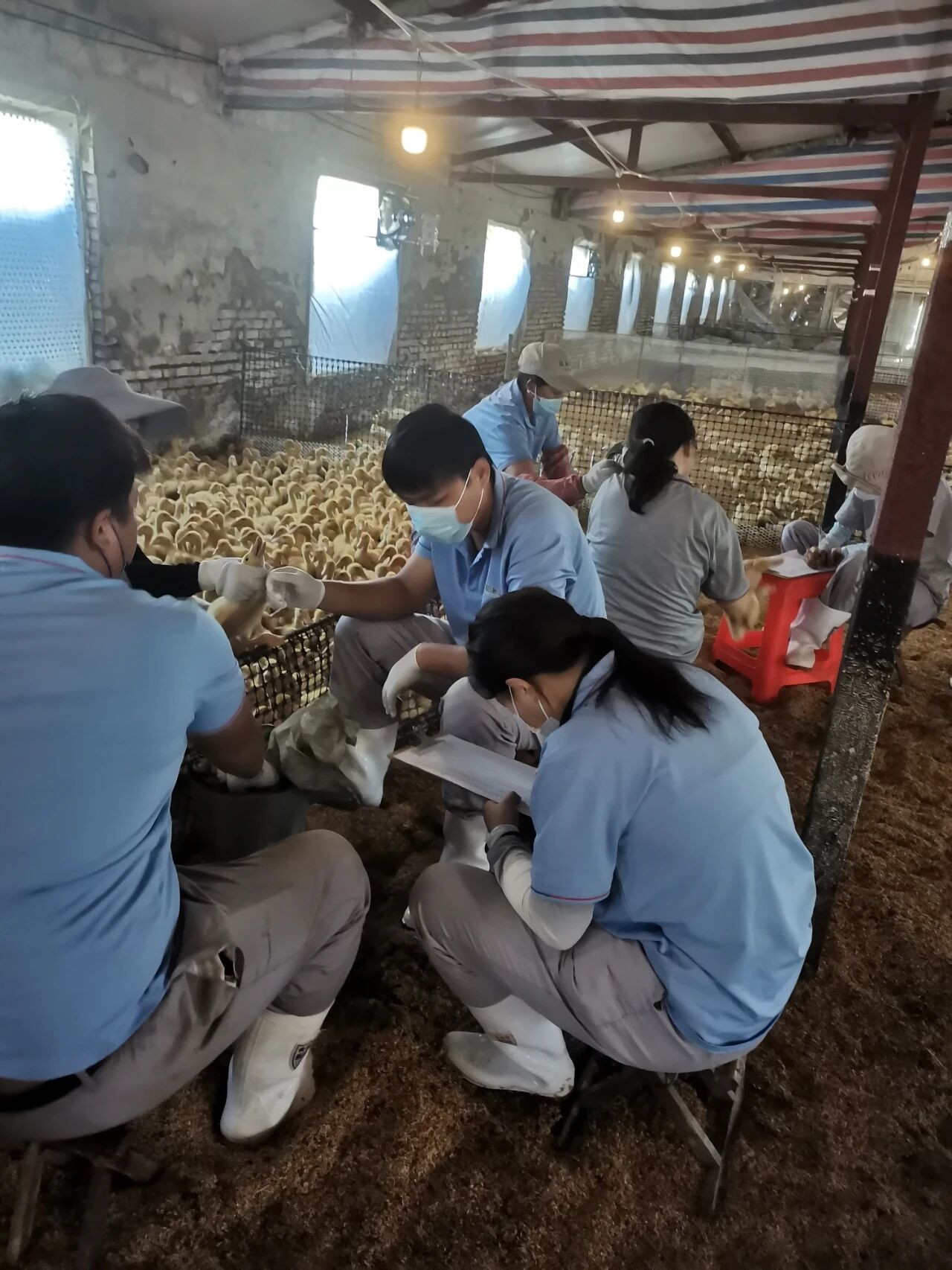 今年4月份,我跟着商品鸭养化验员进行一线学习,才算真正理解“纸上得来终觉浅”。鸭群出现零星死亡,现场采样时,鸭群应激反应特别大,一靠近就扎堆挤压。我学着当地技术员的样子,分辨哪些是正常鸭子,哪些鸭子存在异常情况,采集合格的咽喉拭子。