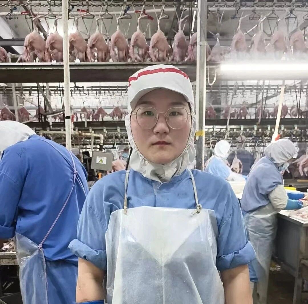 张盼盼来到惠生已有两年多,从初入公司时在剥鸭心岗位起步,一路摸爬滚打,做过鸭肝、腺胃食管等多个岗位。这些岗位的工作不仅繁重,工作流程相对单一,但她毫无怨言,在各个岗位间循环历练,逐渐熟悉每一道工艺,为日后的成长打下了坚实基础。如今,她已凭借自身的努力与能力,成为了一名优秀案长。